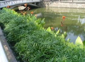 園林中水面景觀低于人的視線,與水邊景觀相呼應(yīng)。水面具有開敞的空間效果,特別是面積較大的水面給人空曠的感覺(jué)。水生植物的點(diǎn)綴,可以增加水面色彩,豐富水面層次,是寂靜的水面得到裝飾和襯托,植物產(chǎn)生的倒影更是水面富有情趣。水面的植物配置要充分考慮水面的景觀效果和水面周圍的環(huán)境狀況,對(duì),清澈明凈的水面或有園林建筑的水面或植有樹姿優(yōu)美、色彩明艷的觀賞樹木時(shí),一定要注意水面的植物不能過(guò)分堵塞,一般不超過(guò)水面面積的三分之一,以便人們觀賞水面和水中優(yōu)美的倒影。