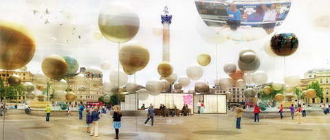 由OH!SOM architects 事務所的建筑師stephanie durniak, marie fade和baptiste franceschi設計的信息館方案。此次競賽第二名的方案是由來自OH!SOM architects事務所的建筑師stephanie durniak,、marie fade和baptiste franceschi設計的。他們的方案是用無數個氣球來裝點整個廣場,屆時會在氣球上投影,滾動播放關于奧運會的節目和賽事,為特拉法加廣場創造一個活躍的、節日般的氣氛。這些氣球將由回收塑料制作,并通過自帶太陽能裝置發電,在夜晚也能發光、播放音樂甚至能吸收污染空氣,釋放新鮮的含氧氣體,在比賽期間凈化廣場空間。