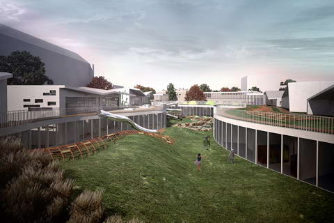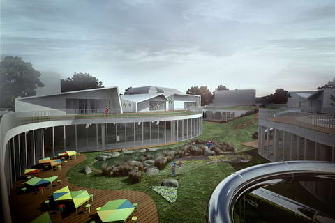 拉脫維亞建筑事務所ARHIS最近完成了一座位于拉脫維亞首都里加的幼兒園建筑競賽方案。教室空間被一座巨大的公園包圍,讓小朋友們能夠與大自然親密接觸。由于幼兒園的兒童年齡不一,建筑空間被劃分為不同的學習區和活動區,其中公園綠化區還和附近的城市公園相連,需要時可以向外界開放,同時也保證了必要的安全性。