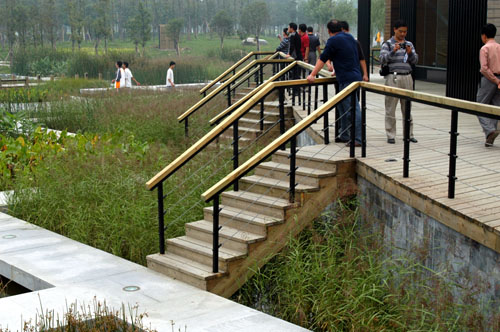 4水岸西側改造成自然緩坡草岸,配置水生、濕生植物,充分展示自然的濕地生態景觀。