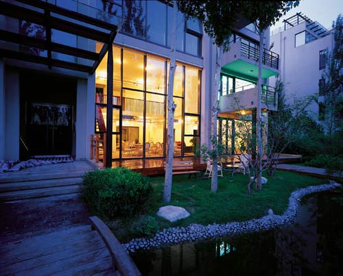 小區的景觀布局以“流水庭院”為主導思想,由會所東側廣場的集中水面向外發散出三條水溪,曲折流過各棟建筑前,創造出自然、人性的流動空間。曲折的水流與挺拔通透的建筑形成鮮明的對比,互為補充,室內外融為一體,創造了宜人的小環境。