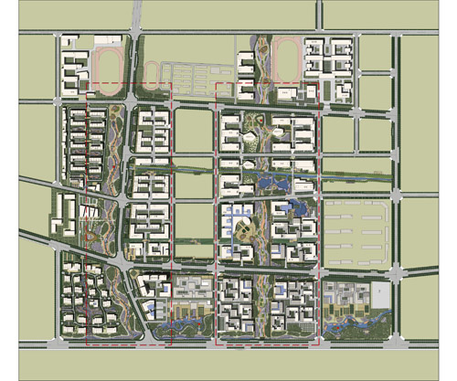 在總體格局、交通組織、景觀設計、建筑形制等方面充分體現新鎮區宜居、宜業的設計理念: