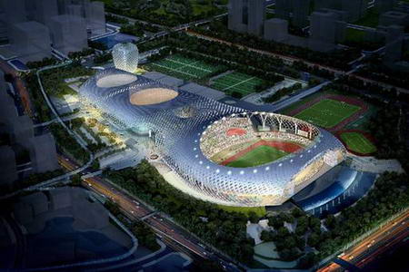 “ 春繭 ”的設計將體育場、體育館、游泳館有機的結合在線條優美的巨型網格狀鋼結構屋面之下。體育設施、商業設施及星級酒店的一體化布局形成了具有活力的建筑綜合體,具有醒目的地域標志性,是深圳市未來的標志性城市景觀。