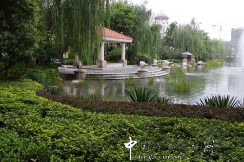 二、中心湖景、噴泉使水景空間有收有放,營造出水流的多變性和韻律感。