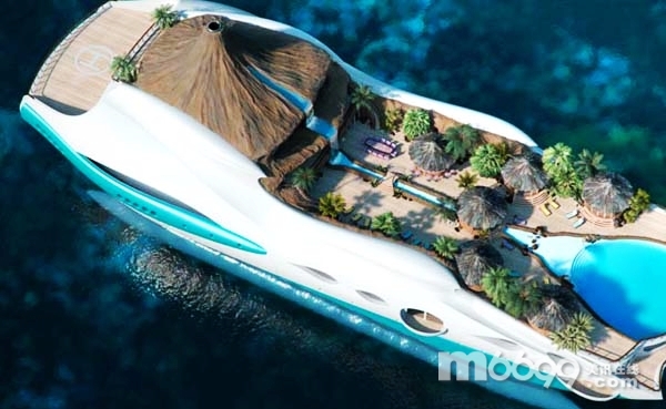 每個人都夢想著會有驚喜的事情發生,不停地收集回憶,不停地對周圍的世界抱有無限的幻想。這個熱帶島嶼游艇對于它的設計者來說,就是夢想的實現。這個游艇是由英國游艇設計公司Yacht Island Designs設計而成。這個漂浮的熱帶島嶼由鋼鐵制作而成,可以在日暮之下行駛。游艇上將建造一座火上,火山可以引導水流向游泳池。泳池的周圍有很多小的屋舍和綠地。這座游艇長90米,上面將會建造很多奢華的房間,環境高雅而且舒適。這一游艇概念是熱帶島嶼天堂。游艇上有一個伸縮自如的海灘甲板,可以為主人提供舒適的休息區域。此外,游艇的火山中還有4個貴賓室和一個主人套房。游艇上有很多高端設備,如電影院、圖書館、游戲室、健身房和桑拿室。