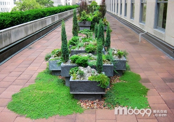 從花園精心的布局和設計就可以看出,花園絕不僅僅是隨意設計在建筑的頂端的。精心巧妙的噴泉池塘、石制湖盆以及蔥綠的植被絕對與普通的屋頂花園不同。為了承載來自管道、土壤以及水泵所帶來的上千噸的重量,洛克菲勒中心的屋頂使用了二外的鋼筋進行了加固。