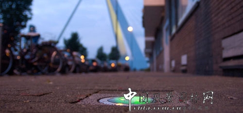 每只LED地?zé)敉ㄟ^弧形玻璃透鏡投射出一個圖標(biāo),這些圖標(biāo)有燃燒中的城市、德國亨克爾轟炸機(jī)剪影和一個處于絕境中、仰天揮舞著手臂的市民,其造型來自鹿特丹著名的二戰(zhàn)紀(jì)念碑"沒有心臟的城市"的上半部分。