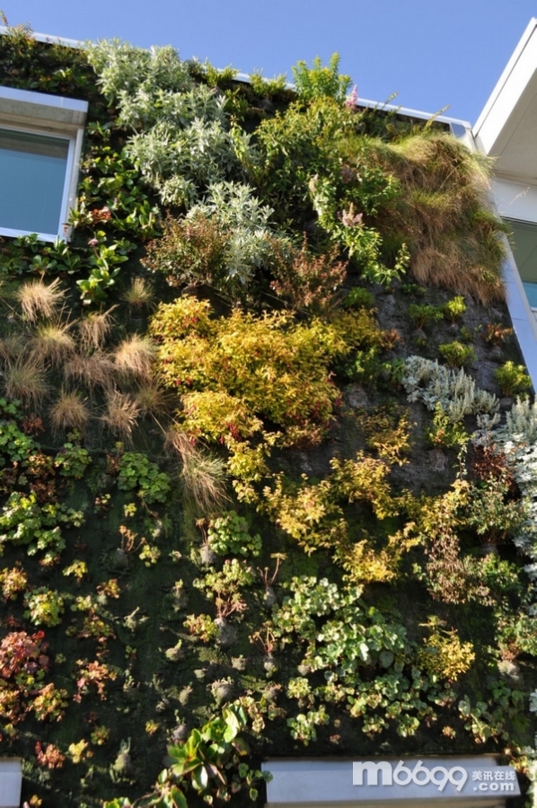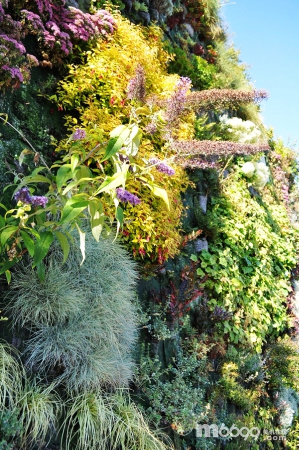“所選擇的植物種類多種多樣,創(chuàng)造了一個平衡的生態(tài)系統(tǒng),成為蜜蜂、蝴蝶以及蜂鳥的城市棲息地”,Green over Grey 負(fù)責(zé)人Patrick Poiraud說到,“生命墻有助于使建筑物與周圍隔離,清新空氣并且將灰色的混凝土轉(zhuǎn)變成成千上萬片的綠蔭。”