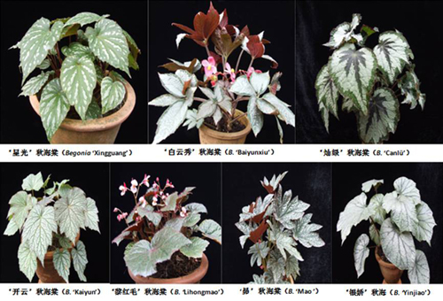 本次通過鑒定的7個新品種分別是:‘銀嬌’秋海棠(Begonia‘Yinjiao’)、‘黎紅毛’秋海棠(B. ‘Lihongmao’)、‘星光’秋海棠(B. ‘Xingguang’)、‘白云秀’秋海棠(B. ‘Baiyunxiu’)、‘燦綠’秋海棠(B. ‘Canlü’)、‘開云’秋海棠(B. ‘Kaiyun’)、‘昴’秋海棠(B. ‘Mao’)。
