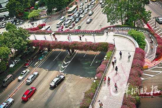 近日,廣州市天橋、立交橋上種植的簕杜鵑紛紛進(jìn)入了盛花期,城中涌現(xiàn)一道道空中花廊美景。