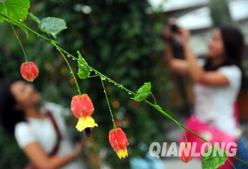 近日,北京世界花卉大觀園精品花卉廳內一種花型酷似燈籠的花卉開花了。花朵下垂,有細長的花梗,紅色的萼片包裹著閉合的黃色花瓣,而伸出的花蕊則像燈籠的穗子,微風吹來、輕輕搖曳、動感飄逸,花朵好似一個個色彩嬌艷、自然別致的“拇指”小燈籠,煞是好看,令人愛不釋手。