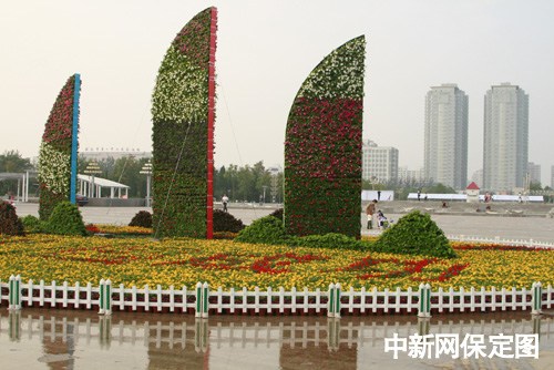 為慶祝新中國成立62周年,保定市園林局在軍校廣場用各種草本花卉制作了景觀立體花壇,該花壇以“揚帆遠航”展示62年來保定在政治、經濟、文化、科技等諸多領域的蓬勃發展。