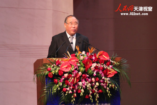國家發改委副主任解振華在第二屆中國(天津濱海)國際生態城市論壇主論壇上做主旨演講(攝影:馮曉龍)