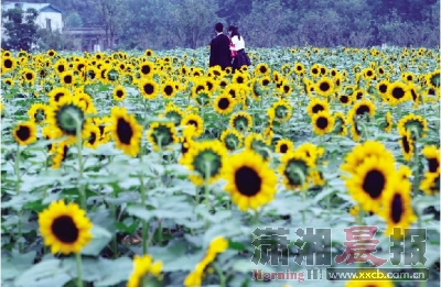 繼長沙園林生態(tài)園的向日葵綻放后,長沙市民又有了一處看向日葵的去處。昨天,湖南省植物園的葵花、桂花展開幕,碩大的向日葵花盤,全部向著太陽的方向怒放,人在其中徜徉,十分美妙。