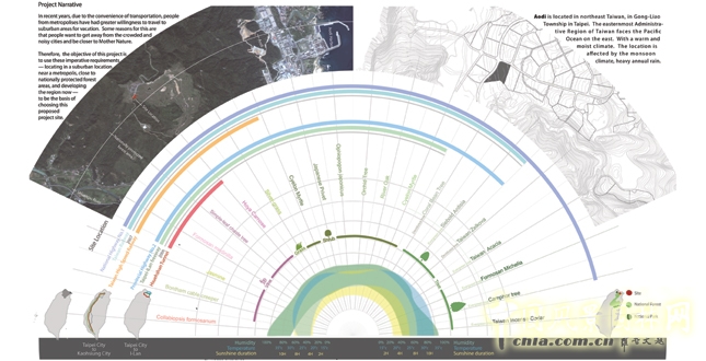 項目說明:項目的選址是位于臺灣東北部臺北貢寮鄉的澳底。澳底面臨最東端的東太平洋,氣候溫暖潮濕,受季風氣候影響,年降雨量大,是國家森林保護區,若沒有環保意識,農舍的建筑將會給環境帶來巨大的問題。下面幾個戰略性的計劃用在保護生物多樣性和生存環境的平衡:
