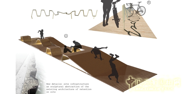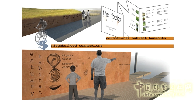 另外,在碼頭中間的水區域里還設立了一系列可以提供教育和實踐的花園。花園將原有的高地變成了以高羊茅和莎草科為主的草坪植物群,從高地植物群演變成梯田式的濕地環境,供多種生物棲息,吸引了游客。