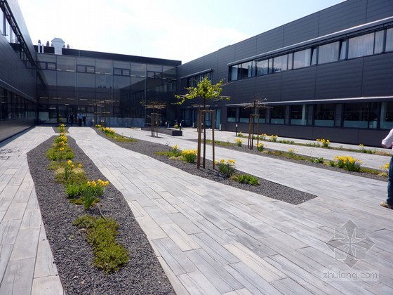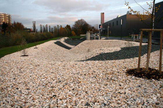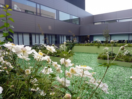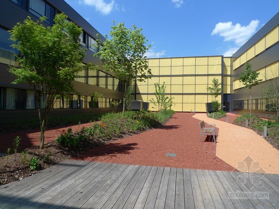 奧地利Klagenfurt的醫(yī)院被分為一個(gè)開(kāi)闊的公園場(chǎng)地和很多小院落。西側(cè),南側(cè),和北側(cè)的公園在河道和其他十九個(gè)院落之間形成過(guò)渡空間。根據(jù)當(dāng)?shù)刈匀坏沫h(huán)境,一些河邊的野生品種被種植在公園和院落里,而南側(cè)的院落則是裝飾性的植物品種。開(kāi)闊的空間內(nèi)系統(tǒng)地分布著不同層次的植物品種和不同類型的灌木品種。除了樹(shù)和灌木之外,還有苜蓿的融入,從而避免了過(guò)敏的發(fā)生。每個(gè)院落都有獨(dú)特的色調(diào),這為游客,病患還有工作人員提供了更好的方向感。
