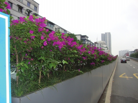 “按照寬度60厘米計算,5座橋上增加的綠化面積達到了1800平方左右,這是在有限空間上增加綠化面積。”市園林局綠化管理處生產科科長龍獻東說,以前針對橋梁的綠化,主要是利用橋下空間或者橋梁立柱,如北新干道:雖然在中央分車帶處有綠化,但那是在原有花臺的基礎上栽花種草。