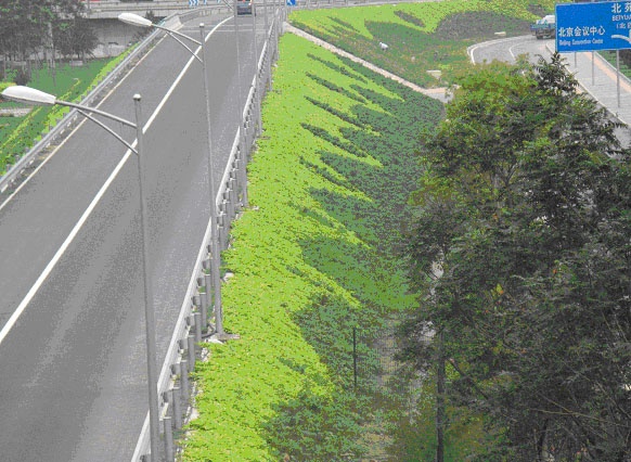 2007年,北京朝陽區綠化局在北五環仰山橋綠化改造中首次大量應用金葉薯進行坡體綠化,綠化設計采用金葉薯與沙地柏組成大型圖案,8月份的時候,工程景觀效果凸現,沙地柏的深綠與金葉薯的金黃搭配在一起格外醒目,過往路人在很遠處都能欣賞到。由于仰山橋是通往奧運工程指揮部的必經之路,此創新應用得到了過往領導的一致肯定。于是,朝陽區綠化局又在四惠橋和四方橋擴大應用,其景觀效果持續到了11月中旬。