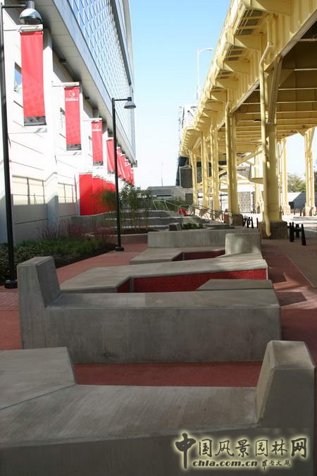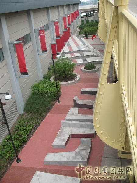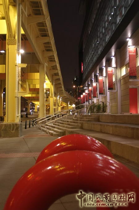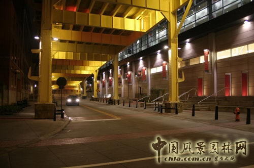 中國風(fēng)景園林網(wǎng)訊 美國肯塔基州路易斯維爾第二街橋(Second Street Bridge)街景項(xiàng)目由CARMAN公司進(jìn)行景觀設(shè)計(jì),萊尼.史溫丁格燈光工程公司(Leni Schwendinger Light Projects)進(jìn)行燈光和色彩方案設(shè)計(jì)。第二街橋下方的道路轉(zhuǎn)變成為一個(gè)廣場(chǎng)——有多種植物,座椅和行人散步空間,可以進(jìn)行節(jié)日慶祝活動(dòng)——上面燈光閃爍的橋頂掩蔽著下方的空間。萊尼.史溫丁格燈光工程公司設(shè)計(jì)的街景包括了沿克拉克紀(jì)念大橋(Clark Memorial Bridge)的輔路和空地。這是一座歷史悠久的懸臂式桁架橋,又稱第二街橋(Second Street Bridge),跨越了美國中東部俄亥俄河(Ohio River)。