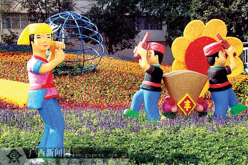 當(dāng)日,南寧市民族廣場、會展中心等各大主要場所以及市內(nèi)主要道路上,風(fēng)格各異的園林小品揭開了美麗的面紗,將南寧點(diǎn)綴得多姿多彩。300多萬盆鮮花在陽光下展露笑臉,準(zhǔn)備迎接八方來客。