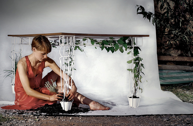 這張讓自然與生活完美結(jié)合的桌子叫Plantable,在Plantable的四條桌腿上分別有四個(gè)可以種植花草的花盆,花草可以順著手工做成的花型桌腿蔓延在整個(gè)桌子的四周,當(dāng)在桌子上就餐的時(shí)候可以享受原汁原味的自然芬香。