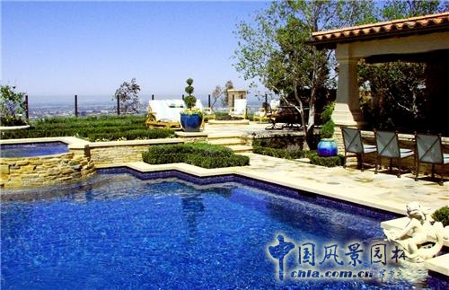 游泳池5/8部分采用價(jià)值10萬(wàn)美元的藍(lán)色馬賽克裝飾