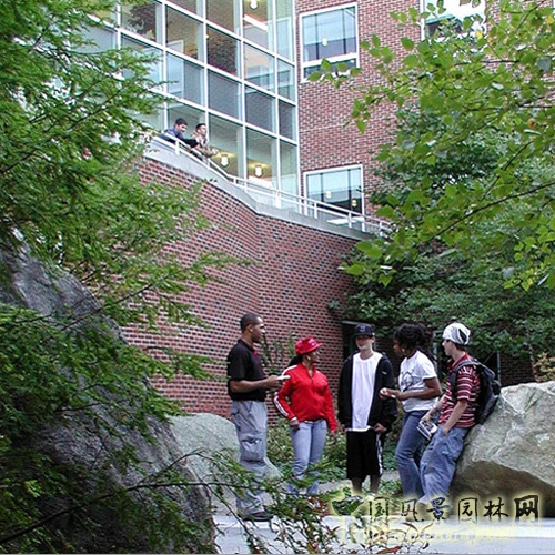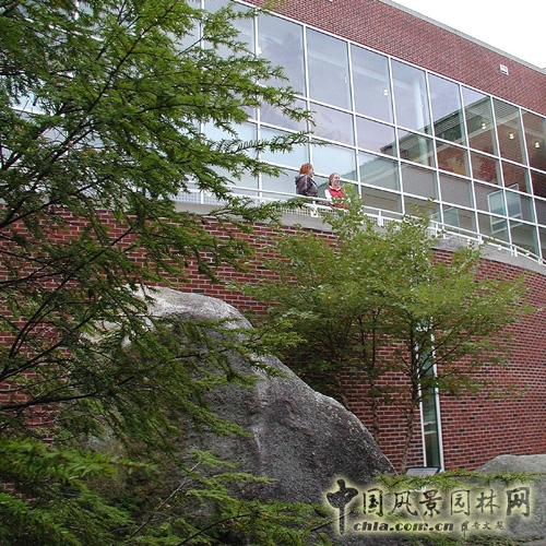 自然科學系和Dirtworks景觀設計公司共同設計用在教育的景觀元素。鋪裝圖案和材料代表地形和當地巖石種類。大巖石則反應巖石層結構,方便學習自然巖石地貌。設計的建筑像一個巨大的日晷一樣,將它的投影投在校園的主干道上。這些墨色的投影列反應出了一些節令時間,比如夏冬至二至點和春秋分二分點。通過精心選擇種植搭配植物,用以反應新罕布什爾州的植物種類和進化。