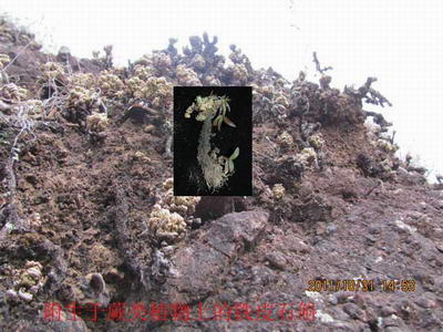 段俊博士在當地藥農的帶領下,發現其中某山頭的野生鐵皮石斛生長于朝西的石壁上,環境非常干燥。此石壁上只生長一些蕨類植物和景天科植物等草本植物,并且除一些景天科植物之外,其它植物因干旱已經枯死。此處的鐵皮石斛長得非常矮小,它不是附生在石壁上,而是附生于石壁的蕨類植物上,并且直接暴露于陽光之下,被附生的蕨類植物也因干旱而枯萎,如此生長環境確實比較特殊。