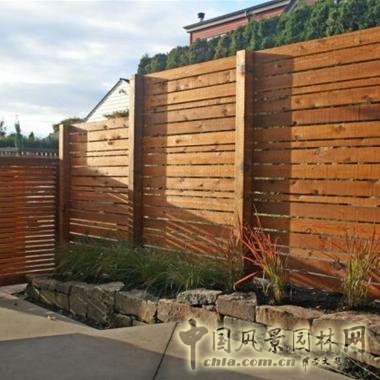 庭院杉柏木墻,下面采用山坡上的石頭堅固