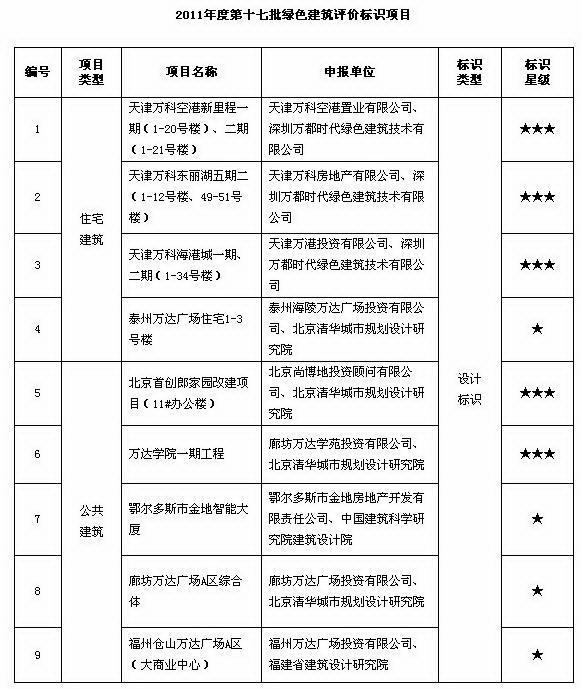 關于2011年度第十五批綠色建筑評價標識項目的公告
