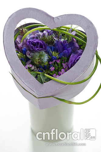鐵、紙、木材、玻璃等異質材料的運用對于現代花藝作品的整體呈現有著不可或缺的作用,由異質材料制作的架構可以幫助花藝師更好的塑造作品形象,一方面彌補單一植物內容的視覺不足,另一方面增加不同材質的對比效果,一舉多得。這一款以紙質架構為基礎的心形花束,教你如何運用構架巧妙的完成花束的制作。