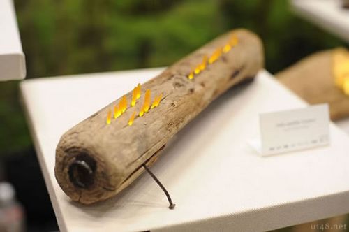 這些栩栩如生的發光蘑菇是由玻璃,木頭和小燈做成的。
