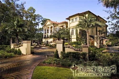 中國風景園林網訊 住宅整體看上去像是一座富豪或名人的住宅,也像是音樂電視里的住宅。宅院位于美國南卡羅來納州希爾頓黑德島上,是一個像度假莊園的住宅。
