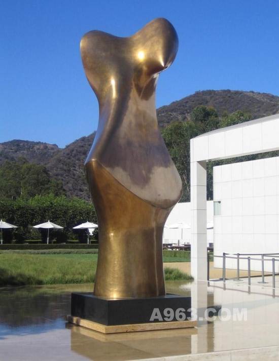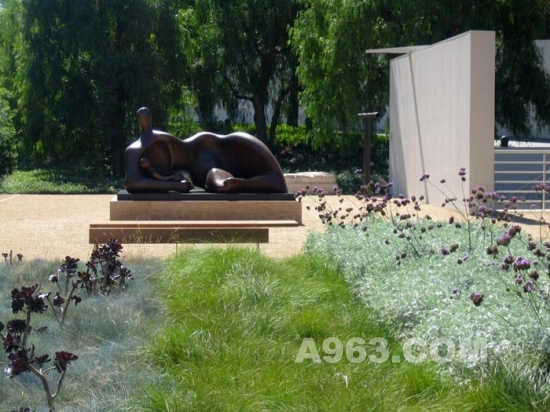 ▲無(wú)邊框鏡面水池與Henry Moore的雕塑 ‘Bronze Form’.