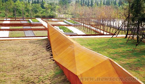 入口區的臺地廣場中的石陣形成了雕塑空間,石陣中種以生命力旺盛的鄉土植物,與場所中的現代元素形成強烈的對比。