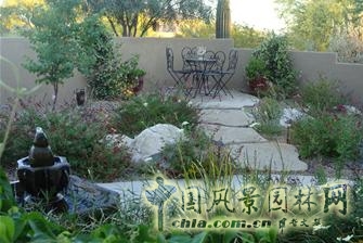 中國風景園林網訊 美國亞利桑那州圖森市景觀設計師RachelGioannini的設計目標是創造出很受歡迎的、舒適的、明朗的戶外景觀。對她來說,景觀設計更多的是關于人,而不是植物。最近,她將一個不規格的庭院改造成了一個漂亮的花園,是使亞利桑那州沙漠區的前庭院變身成一個綠意盎然的家庭花園,受用于亞利桑那州的一對夫婦及他們的孩子們和狗。