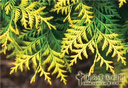 有很多種松柏類植物冬季在花園里表現得相當美麗。金鐘柏在西方是叫做“北美金香柏”,一種帶有金色葉子的新種側柏可以為寒冷的冬季增加色彩,因其可以承受零下40攝氏度的低溫,所以,這種植物幾乎可以種植在任何溫度下。