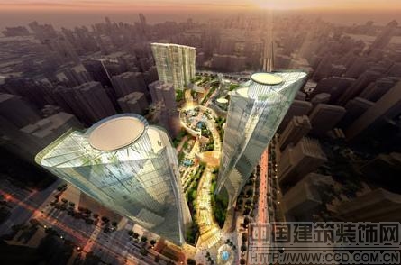 兩座拔地而起的大廈成為該地區入口的標志,細長優雅的樓身和超清晰的玻璃系統將內外部公共空間聯系起來,并且在現代和歷史性的城市背景中以旋轉的姿態向上。從屋頂觀景平臺可以俯瞰下面的現代城市和附近的歷史區域。這種花園城市般的設置反映出中國不斷發展的現代城市景觀。