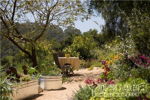 原有特征:已燒毀的光禿禿的山坡和即將到來(lái)的雨季。時(shí)間很寶貴,為了避免雨水的侵蝕和滑坡現(xiàn)象的發(fā)生,Grace首先著手于大多數(shù)易受破壞的斜坡,采用將干燥的石頭墻砌成階梯形,并作為露臺(tái)。而且,在已被燒光了的斜坡上種植根系發(fā)達(dá)的植株,可以防止雨水的侵蝕。
