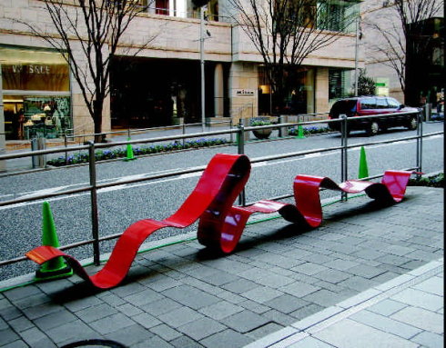 林蔭道兩旁的裝置藝術作品不但具有休憩座椅的功能,而且每一件都是由知名的藝術家創作的,表達出不同的設計理念,獨樹一幟,非常富有趣味性,展現了此地所具有的藝術文化氣息與悠閑的生活氛圍。