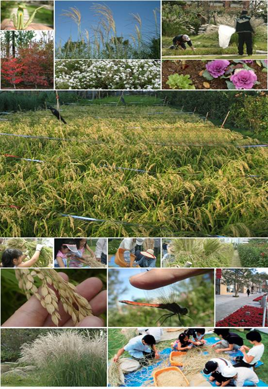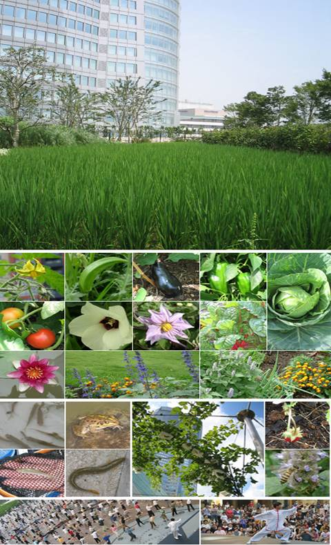 六本木新城的空中花園,從人的最基本生存需要出發,設置了稻田、蔬菜等田園風格的景觀,強調了業主的可參與性,人們在春天開始播種,為大城市帶來清新的田園景觀。