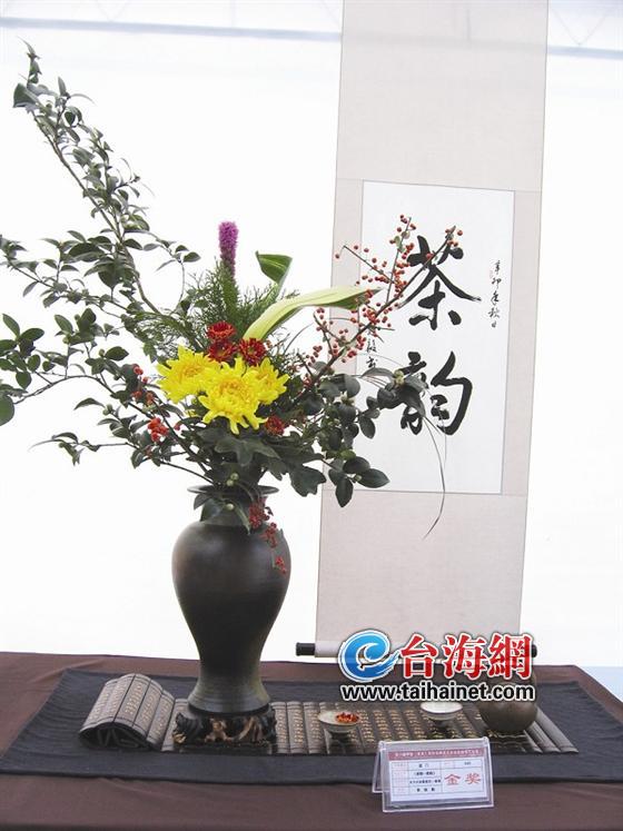 在剛開幕的中國第八屆(重慶)國際園林博覽會上,廈門市風景園林插花花藝分會表現出色,獲得2金1銀2銅。其中,東方式插花作品《茶韻》(如圖)和《龍飛鳳舞》分獲金獎。