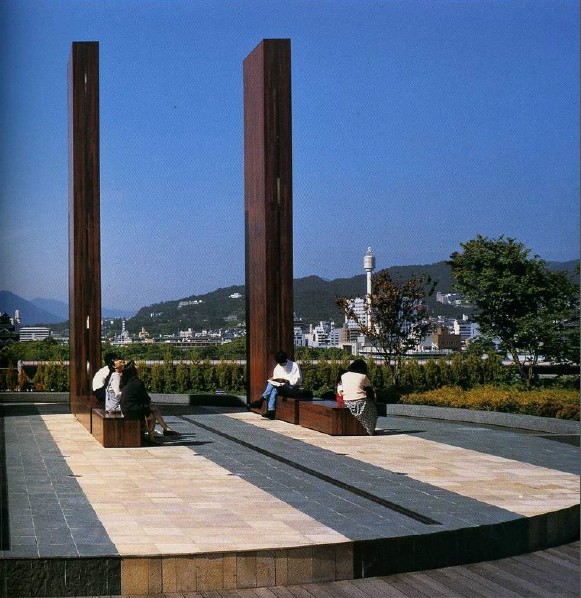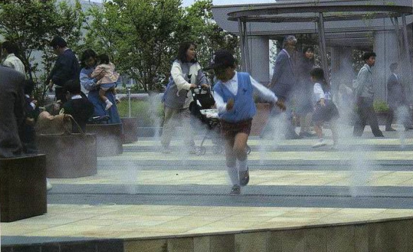 “霧舞臺”是藍天花園的象征,在產生霧氣的舞臺和帶有長椅的紀念碑的對面,能望到被淡霧籠罩和;藍天包圍的廣島城和中國地區的山脈。
