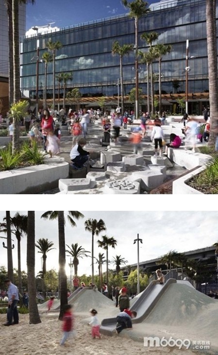 澳大利亞著名景觀建筑公司ASPECTStudios受悉尼海岸管理局(SydneyHarbourForeshoreAuthority,SHFA)及開(kāi)發(fā)商LendLease委托,在悉尼達(dá)令港設(shè)計(jì)了一個(gè)新的公共購(gòu)物區(qū)及城市玩樂(lè)空間。該項(xiàng)目名稱為達(dá)令廣場(chǎng),是一個(gè)占地1.5英畝、集一個(gè)公共公園、新咖啡館、餐廳、酒吧、商業(yè)建筑(澳洲聯(lián)邦銀行)以及兒童游樂(lè)場(chǎng)為一體的場(chǎng)所營(yíng)造項(xiàng)目。在超過(guò)4000㎡的土地面積上,這個(gè)項(xiàng)目將成為悉尼中心商業(yè)區(qū)最大的玩樂(lè)空間,加之其互動(dòng)性強(qiáng)的水上游樂(lè)設(shè)施,有望一次加強(qiáng)達(dá)令港作為澳大利亞最熱門(mén)的旅游目的地的聲望。