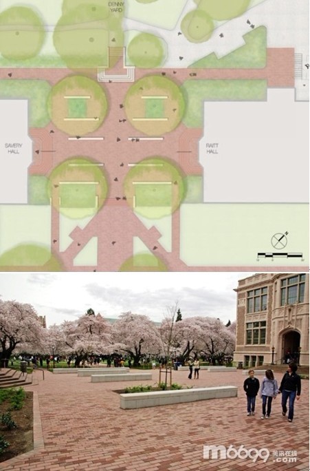 沙弗利廣場連接著華盛頓歷史著名的萊特和傻弗利大廳,它是連結兩個巨大開放空間theArtsQuad和DennyYard的橋梁。隨著廣場白天人流量的不同,橋梁將人流分配到不同的校園當中。該大學整修該空間的目的就是保護這些重要的生命機能,同時為學生的交談和聚會營造一個更加舒適的環境。