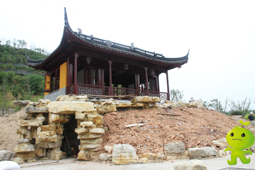 經過中心廣場,穿過白龍洞,登上邀月樓,"群山西來,大江東去"的景象盡收眼底。邀月樓為明清風格,五開間兩層歇山頂古建筑,簡潔、開敞、大氣,與園博會整體建筑風格相協調。