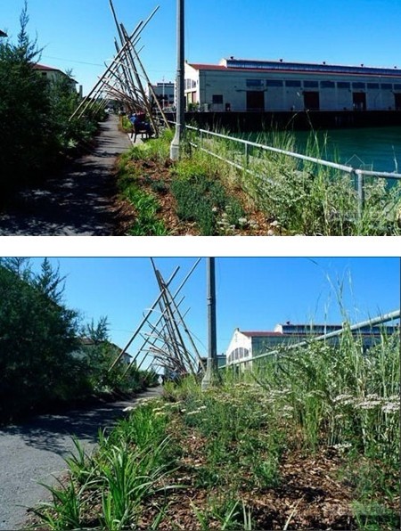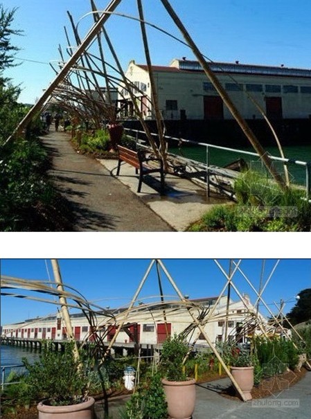 如果你上周末在WestCoastGreen的話,你就會(huì)明顯注意到沿著水邊排布的一系列優(yōu)雅的竹子結(jié)構(gòu),它們由美麗的自然景觀環(huán)繞;但你可能沒有留意的是,這些結(jié)構(gòu)實(shí)際上是用來支撐沼澤草的懸浮花園,還是預(yù)防和修復(fù)雨水徑流的一種策略。