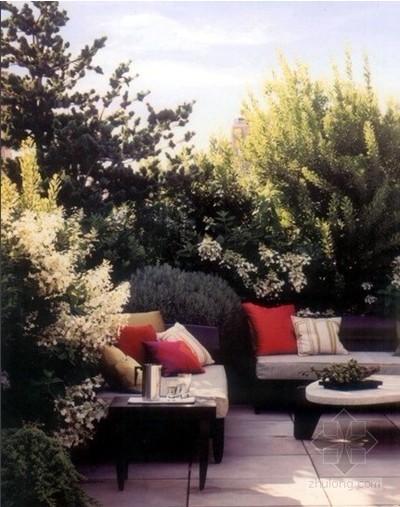 這是一座花園式的屋頂建筑,它地處曼哈頓金融中心,占地面積為130平方米。設(shè)計師受到美國建筑師保羅·魯?shù)婪蚝头▏ㄖ熂鳌F蒸斖推ひO穆遄髌返膯l(fā),拆除了原場地中已過時的屋頂涼篷,成功地打造出了頗具現(xiàn)代感和家居時尚的屋頂花園結(jié)構(gòu)。設(shè)計中多處運用了鋼制框架結(jié)構(gòu),并以此為基礎(chǔ)設(shè)計了噴泉、藤架、種植園、戶外餐廳和浴室等區(qū)域,形成了花園式的景觀,同時又通過沙發(fā)和躺椅等裝飾的巧妙布置,營造出了家的溫馨和舒適。