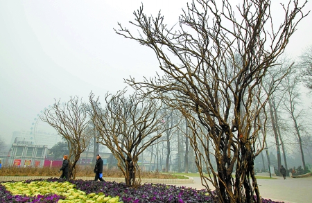 記者在市人民公園看到,8株樹狀紫斑牡丹分別被移植在公園彭公祠六角亭東月牙形花壇、盆景壇和牡丹亭南側(cè),高均在兩米以上(如圖)。公園主任楊志恒介紹,這樣大的樹狀牡丹在洛陽也難以見到,每棵報價萬元以上,8棵樹齡都在70年以上。“這次引進(jìn)的紫斑牡丹樹齡長、耐寒、耐旱,在鄭州成活應(yīng)當(dāng)沒問題。這些牡丹落戶牡丹園后,將成為園內(nèi)真正的‘牡丹王’。”